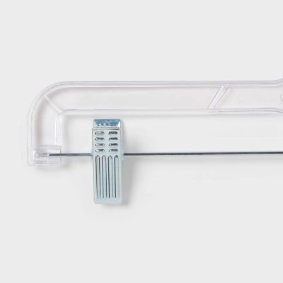 Keep your clothes organized in the closet with these 4-Pack Crystal Hangers from Brightroom™. Made of plastic, these hangers boast a crystal finish and feature side clip-ons to hang pants, skirts and other garments neatly to keep them wrinkle-free. Plus, these hangers also come with a top loop that easily attaches to the closet’s horizontal rod.