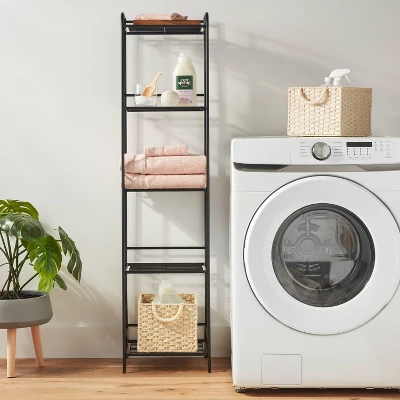 Update your home with the functional, sleek style of this Narrow Folding 5-Shelf from Brightroom™ that helps keep your space organized. This standing shelf for storage is set on a black metal frame for a modern look that works well in a variety of spaces and decor styles. Multiple open shelves provide enough space for your items and give you easy access to them. With the foldable design, this metal-frame shelf is easy to move and store when not in use.